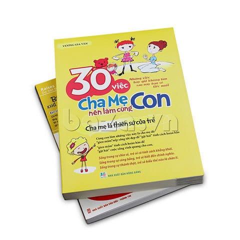 Cuốn sách “30 Việc cha mẹ nên làm cùng con” sẽ cung cấp cho các bạn các kiến thức cơ bản trong nuôi dạy trẻ. Chẳng hạn như hãy cùng trẻ làm việc nhà, để trẻ hiểu được mình là một thành viên trong gia đình, không nên bắt ép trẻ ngồi vào bàn học ngay sau khi tan trường; hãy nhớ lại xem: Cha mẹ và con cái đã bao lâu chưa đi chơi cùng nhau? Lần nói chuyện gần đây nhất là vào lúc nào? Ở lớp trẻ chơi thân với ai nhất? Thầy cô giáo trẻ yêu mến nhất là ai?… Nếu không trả lời được, hãy đọc sách nhé!